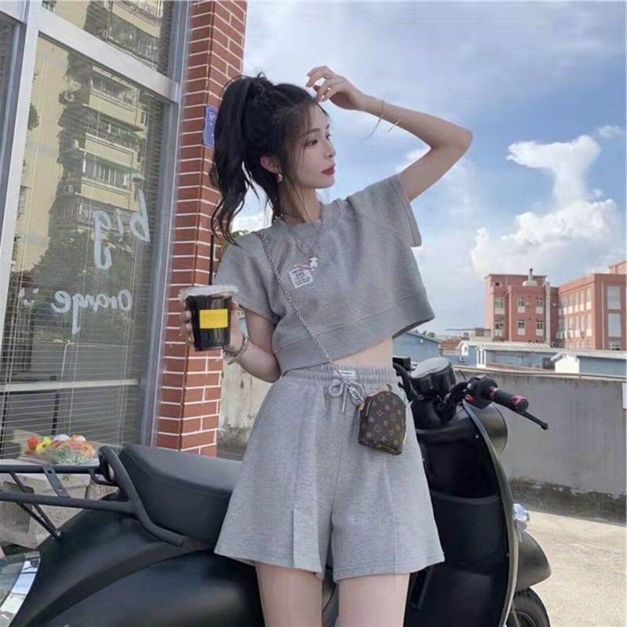 超特価 美人度アップ ファッション カジュアル スウィート 運動 半袖 Tシャツⅹパンツセット2色GF8545