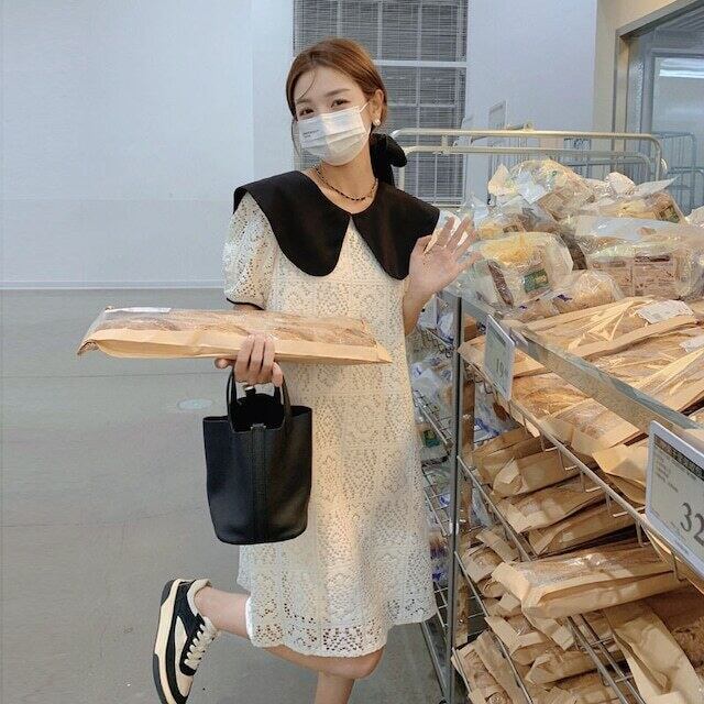 大人可愛い 美人度アップ エレガント 気質 レース 切り替え ファッション 通勤 ワンピースGF8361