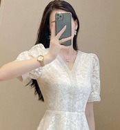 激安セール 主役級 美人度アップ 上品 レース Vネック エレガント 気質 ファッション 通勤 フェミニン ワンピースGF8372