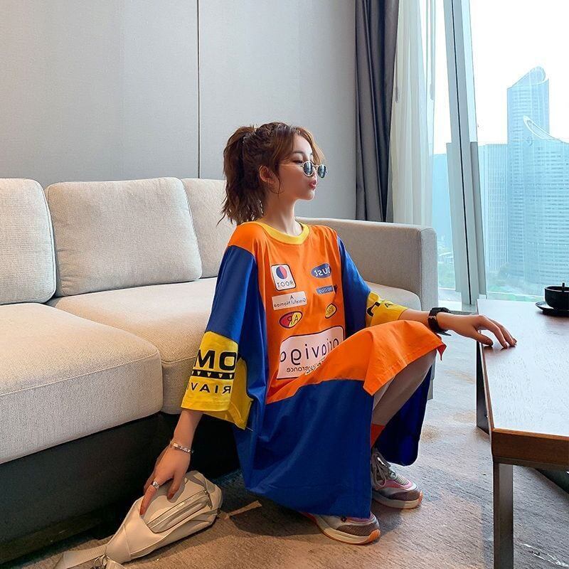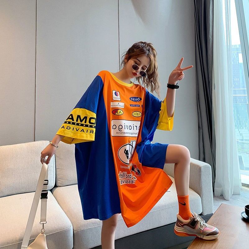 好感度UP 個性派 ファッション プリント 切り替え ゆったり ワンピースGF8225