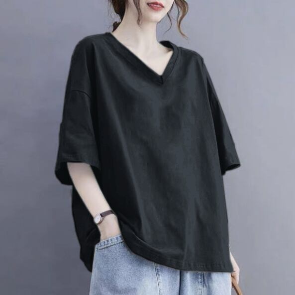 マルチカラー vネック カジュアル 無地 半袖 シャツ 大人カジュアル fashion ootd 夏コーデ ファッション coordinateコーディネート 夏服 カジュアルコーデ 今日のコーデ 大人コーデ レディースGF5218