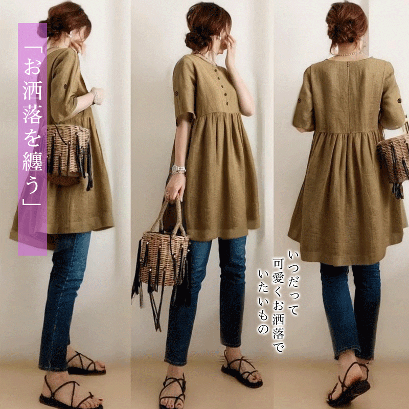 トレンドアイテム カジュアル シンプル ギャザー 無地 ラウンドネック 半袖 ブラウス 大人カジュアル fashion ootd 夏コーデ ファッション coordinateコーディネート 夏服 カジュアルコーデ 今日のコーデ 大人コーデ レディースGF5867