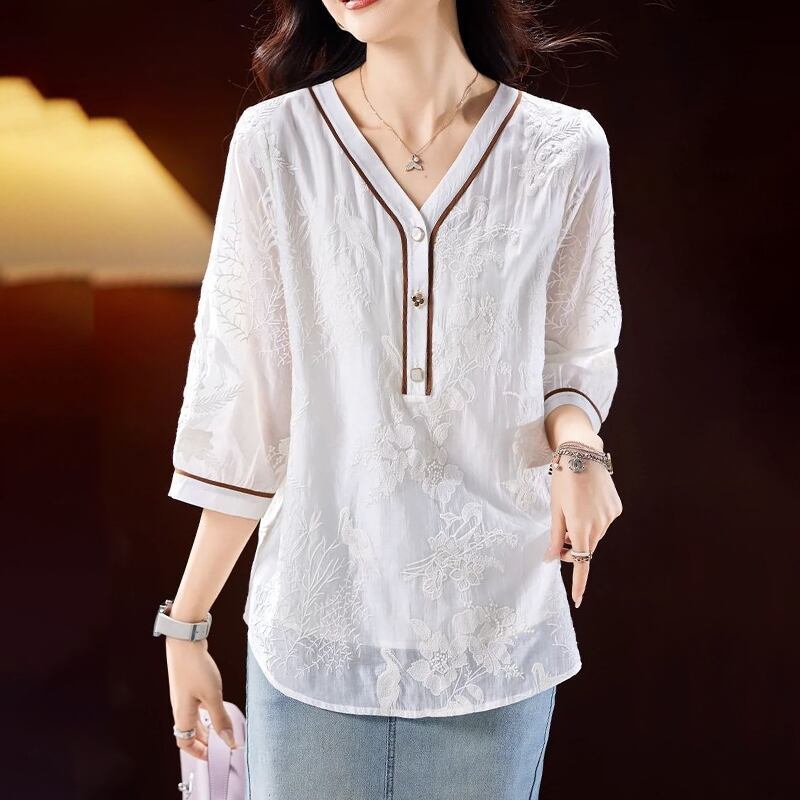 女性に大人気 Vネック プルオーバー 無地 カジュアル シャツ 大人カジュアル fashion ootd 夏コーデ ファッション coordinateコーディネート 夏服 カジュアルコーデ 今日のコーデ 大人コーデ レディースGF7532