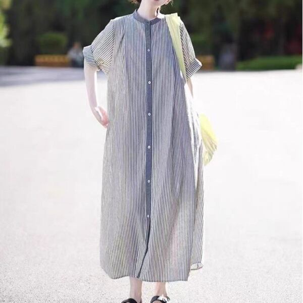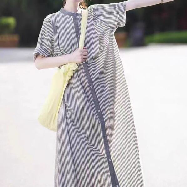 着回し力抜群 シンプル 森ガール ストライプ柄 ラウンドネック カジュアルワンピース 大人カジュアル fashion ootd 夏コーデ ファッション coordinateコーディネート 夏服 カジュアルコーデ 今日のコーデ 大人コーデ レディースGF7548