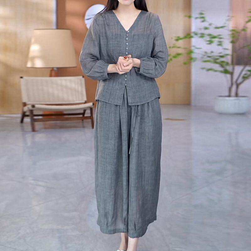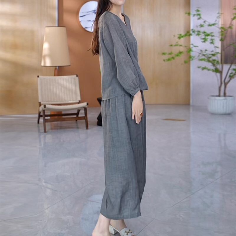 絶対欲しい カジュアル 森ガール 無地 九分袖 シャツ+パンツ 二点セット 大人カジュアル fashion ootd 夏コーデ ファッション coordinateコーディネート 夏服 カジュアルコーデ 今日のコーデ 大人コーデ レディースGF7550