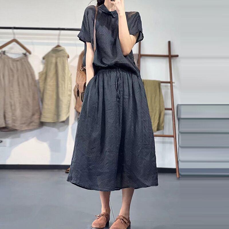 大流行新作 ドット柄 ボウタイ 通気性良い 半袖 シャツ+スカート 二点セット 大人カジュアル fashion ootd 夏コーデ ファッション coordinateコーディネート 夏服 カジュアルコーデ 今日のコーデ 大人コーデ レディースGF7554