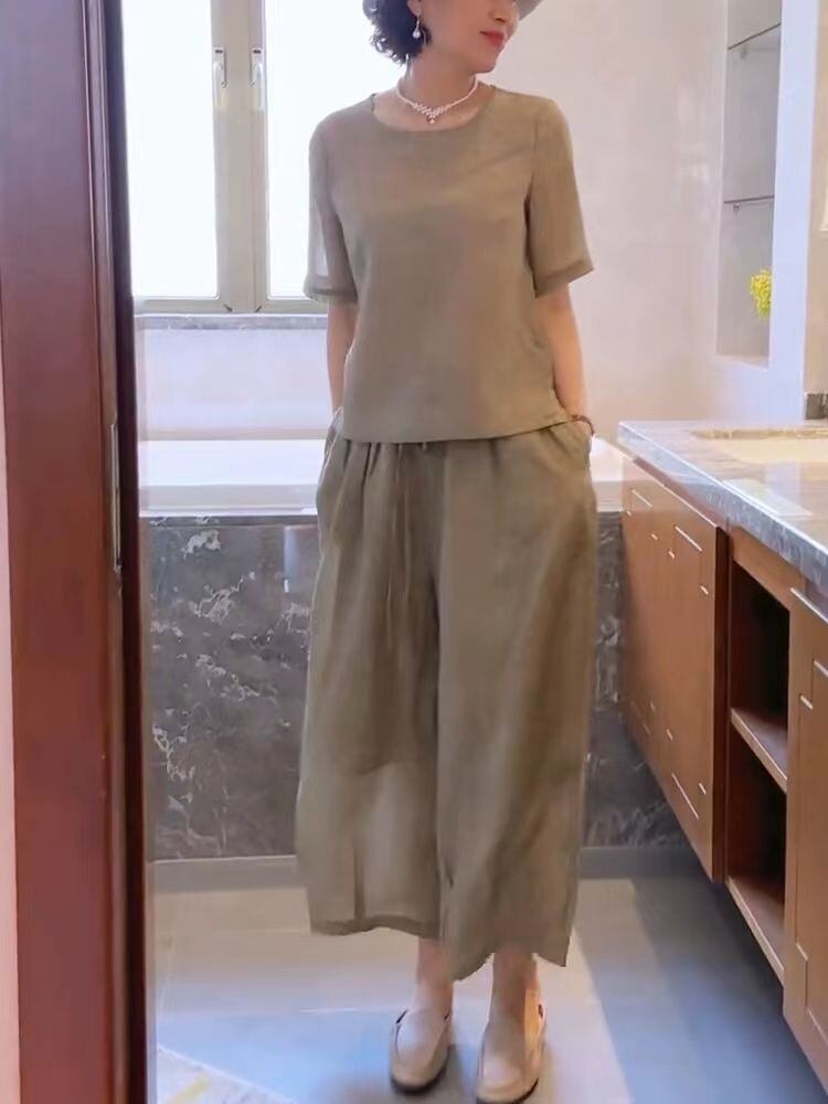 絶対欲しい シンプル 森ガール 無地 接触冷感 Tシャツ+パンツ 二点セット 大人カジュアル fashion ootd 夏コーデ ファッション coordinateコーディネート 夏服 カジュアルコーデ 今日のコーデ 大人コーデ レディースGF7570