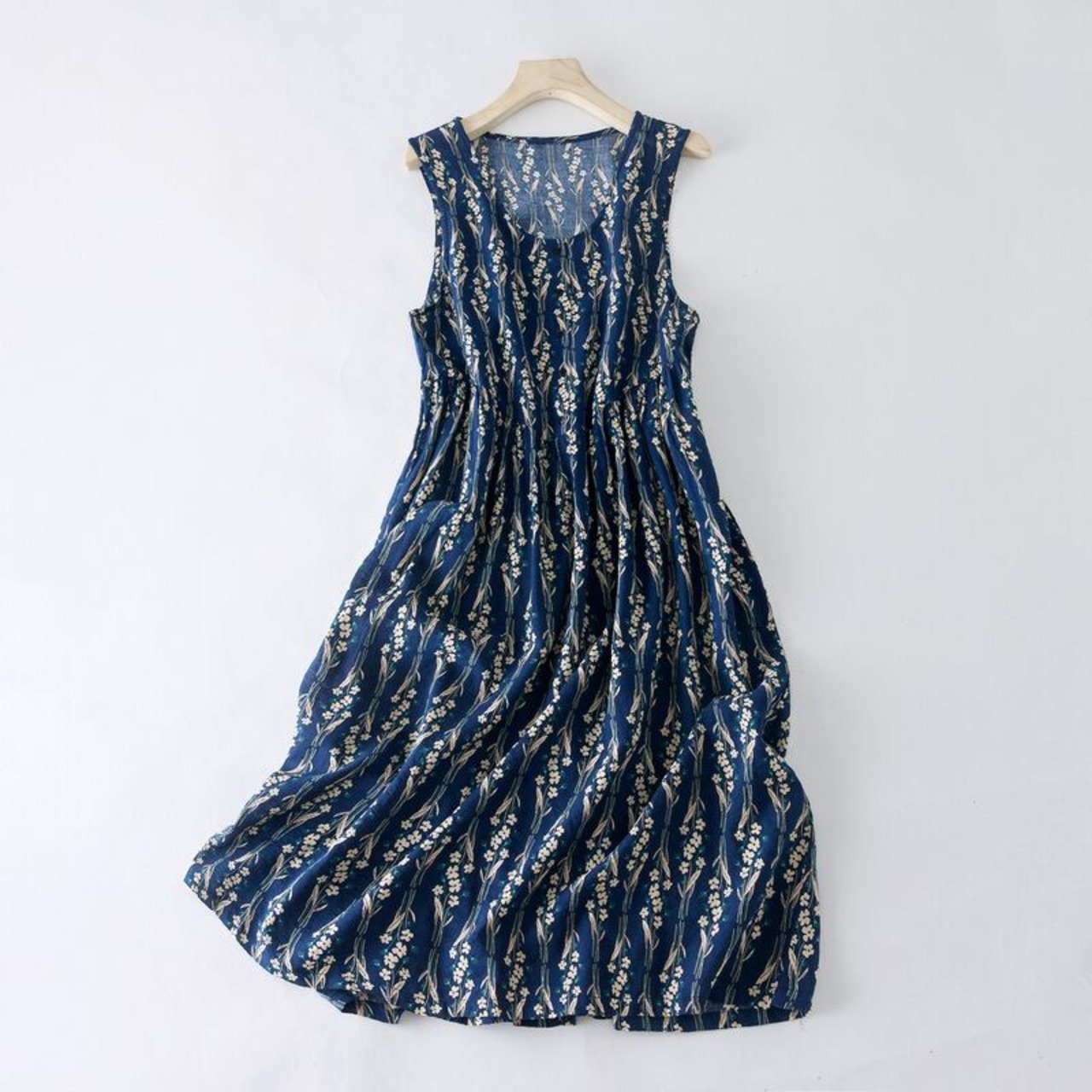 ボヘミアンスタイル ラウンドネック ルーズ ノースリーブ Aライン プリントワンピース 大人カジュアル fashion ootd 夏コーデ ファッション coordinateコーディネート 夏服 カジュアルコーデ 今日のコーデ 大人コーデ レディースGF7644