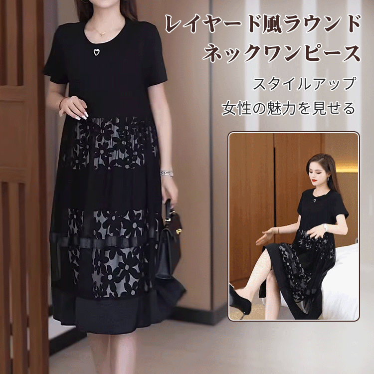 主役級 シンプル ラウンドネック プリント 半袖 カジュアルワンピース 大人カジュアル fashion ootd 夏コーデ ファッション coordinateコーディネート 夏服 カジュアルコーデ 今日のコーデ 大人コーデ レディースGF7602