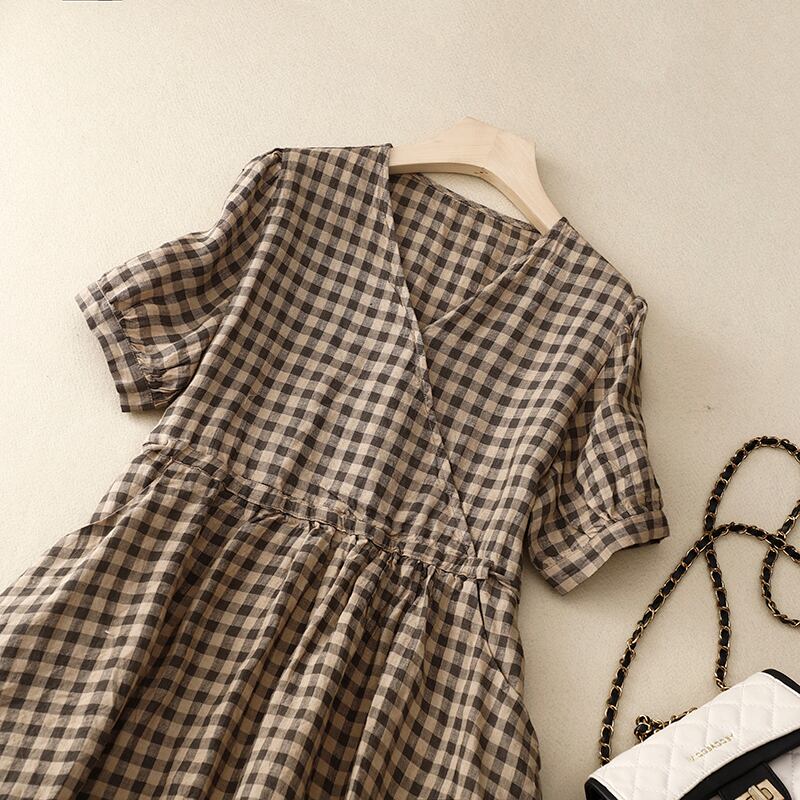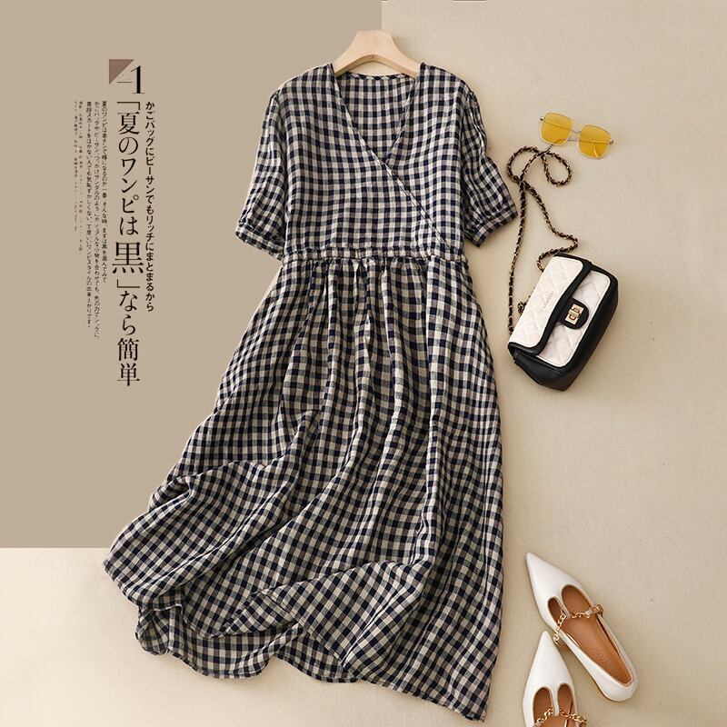 着回し力抜群 森ガール チェック柄 Vネック 中長 カジュアルワンピース 大人カジュアル fashion ootd 夏コーデ ファッション coordinateコーディネート 夏服 カジュアルコーデ 今日のコーデ 大人コーデ レディースGF7707