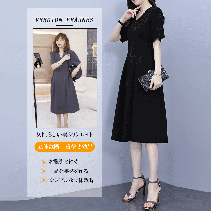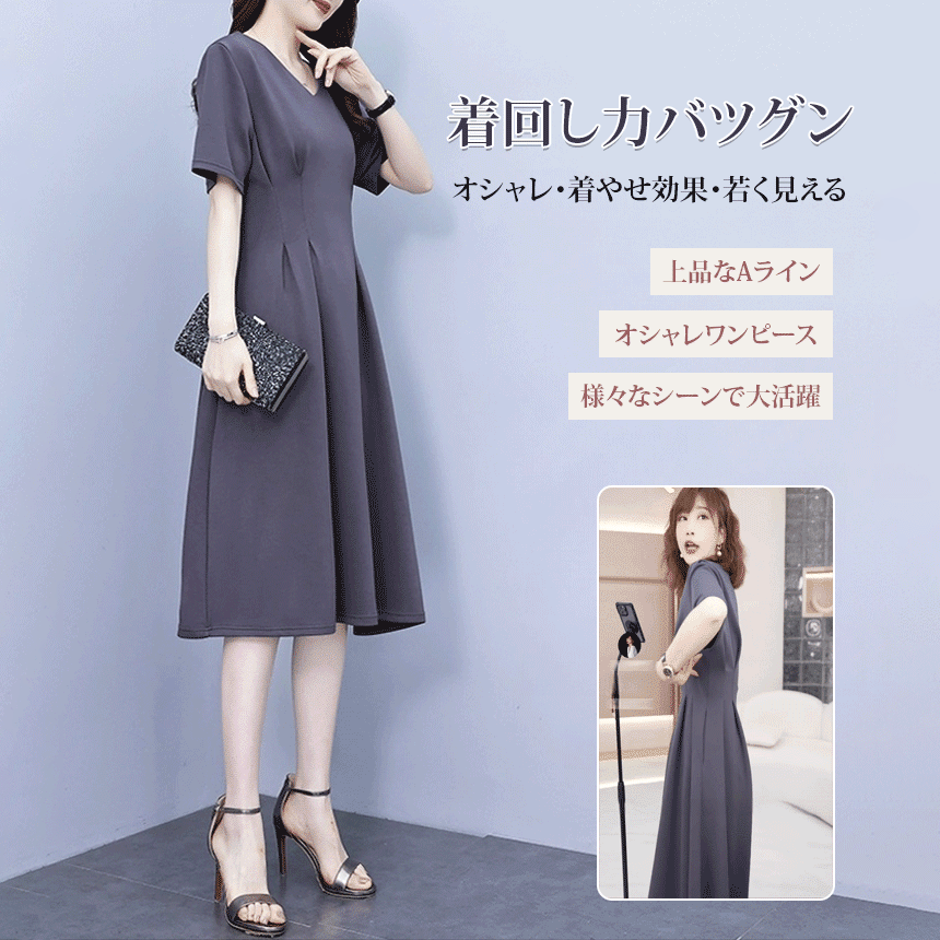 こだわりデザイン シンプル 無地 Vネック 五分袖 カジュアルワンピース 大人カジュアル fashion ootd 夏コーデ ファッション coordinateコーディネート 夏服 カジュアルコーデ 今日のコーデ 大人コーデ レディースGF7742