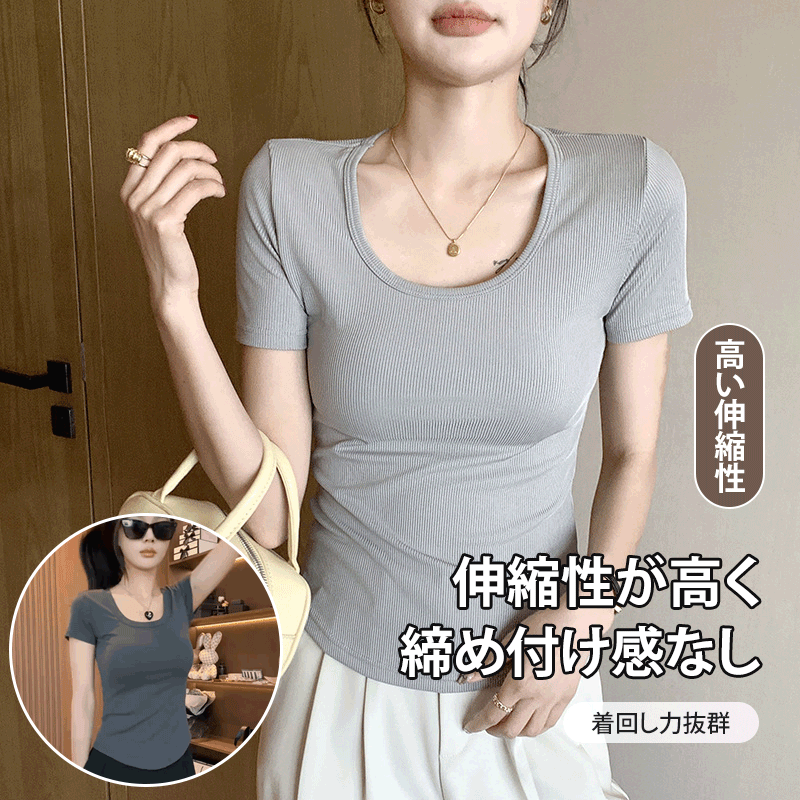 目を惹く シンプル 無地 Uネック 半袖 Tシャツ 大人カジュアル fashion ootd 夏コーデ ファッション coordinateコーディネート 夏服 カジュアルコーデ 今日のコーデ 大人コーデ レディースGF7743