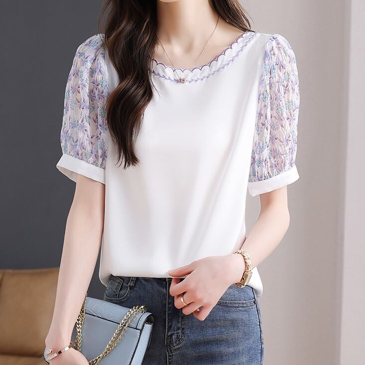 高見えデザイン エレガント プリント 半袖 ラウンドネック Tシャツ 大人カジュアル fashion ootd 夏コーデ ファッション coordinateコーディネート 夏服 カジュアルコーデ 今日のコーデ 大人コーデ レディースGF7764