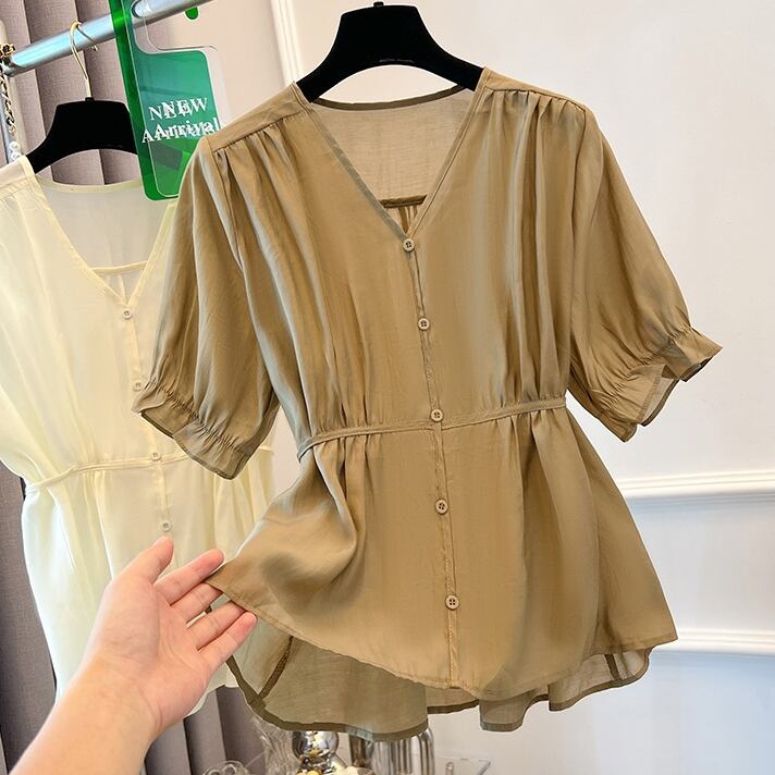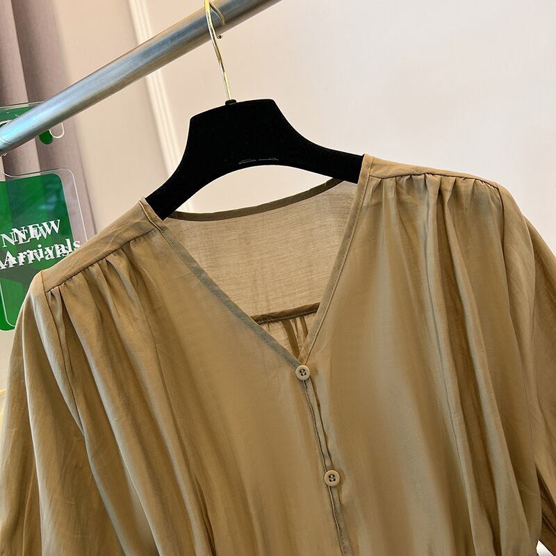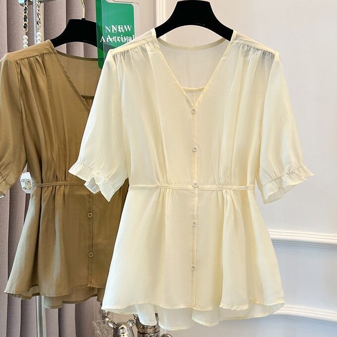 SNSで話題沸騰 Vネック シングルブレスト 無地 シャツ 大人カジュアル fashion ootd 夏コーデ ファッション coordinateコーディネート 夏服 カジュアルコーデ 今日のコーデ 大人コーデ レディースGF7769