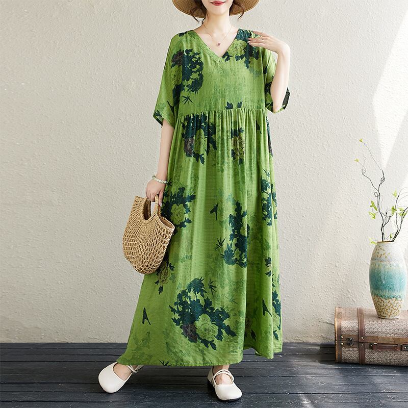 話題沸騰中 レトロ 大きめのサイズ感 半袖 Vネック カジュアル プリントワンピース 大人カジュアル fashion ootd 夏コーデ ファッション coordinateコーディネート 夏服 カジュアルコーデ 今日のコーデ 大人コーデ レディースGF7781