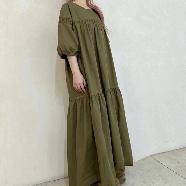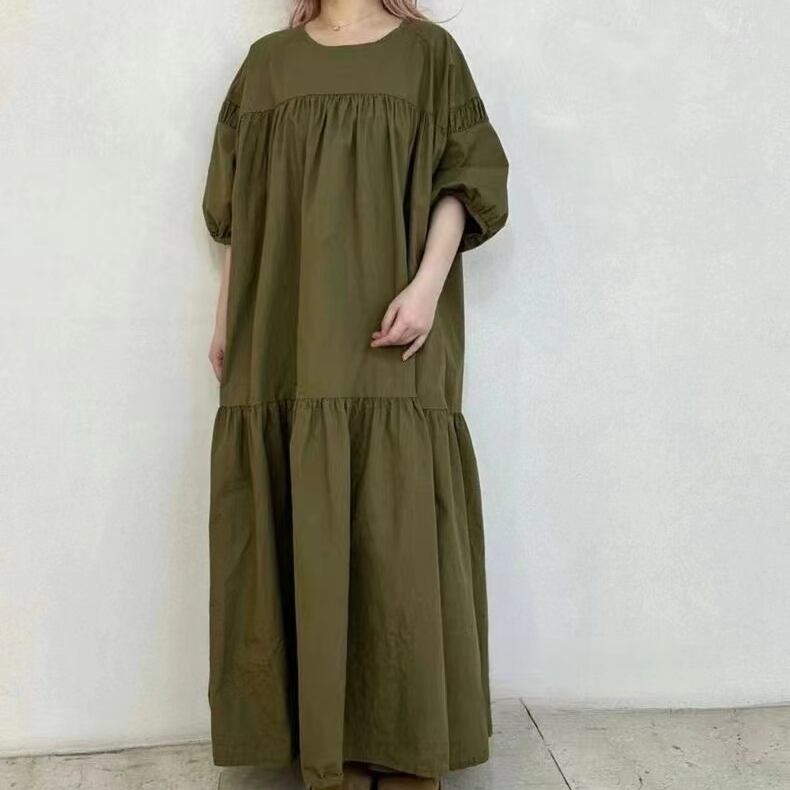 着痩せ効果 七分袖 ビックシルエット 切り替え ランタンスリーブ 通勤 通気性良い カジュアルワンピース 大人カジュアル fashion ootd 夏コーデ ファッション coordinateコーディネート 夏服 カジュアルコーデ 今日のコーデ 大人コーデ レディースGF7832
