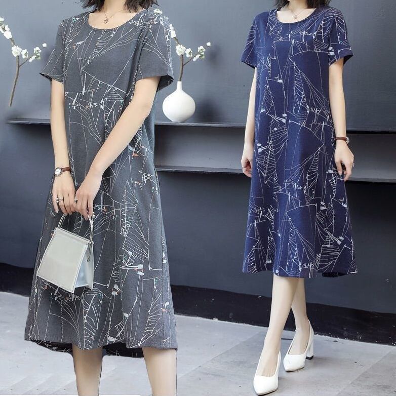 女っぽさが漂う ラウンドネック Aライン 半袖 シンプル プリントワンピース 大人カジュアル fashion ootd 夏コーデ ファッション coordinateコーディネート 夏服 カジュアルコーデ 今日のコーデ 大人コーデ レディースGF7836