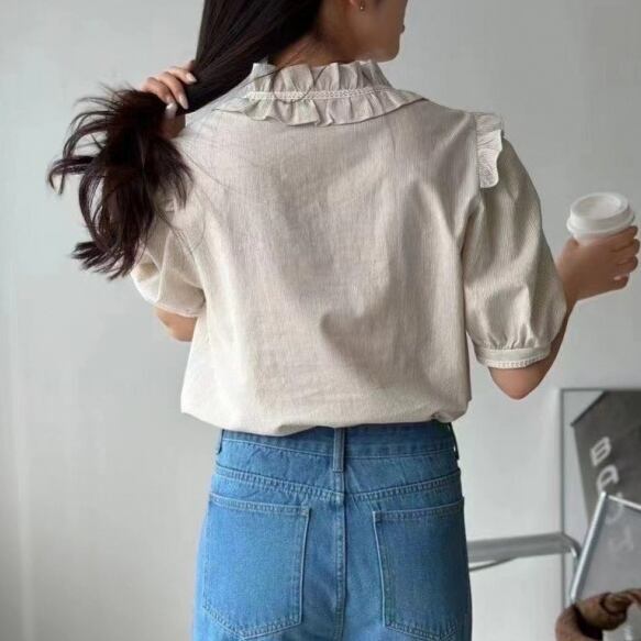 好感度UP シンプル 無地 プルオーバー Vネック 半袖 ブラウス 大人カジュアル fashion ootd 夏コーデ ファッション coordinateコーディネート 夏服 カジュアルコーデ 今日のコーデ 大人コーデ レディースGF5086