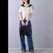 欠かせない フェミニン 混色 ニット Tシャツ+ハイウエスト デニムパンツ 2点セット 大人カジュアル fashion ootd 夏コーデ ファッション coordinateコーディネート 夏服 カジュアルコーデ 今日のコーデ 大人コーデ レディースGF5088