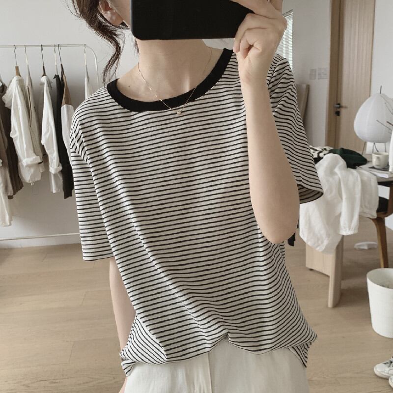 人気上昇中 ラウンドネック ボーダー シンプル Tシャツ 大人カジュアル fashion ootd 夏コーデ ファッション coordinateコーディネート 夏服 カジュアルコーデ 今日のコーデ 大人コーデ レディースGF7920