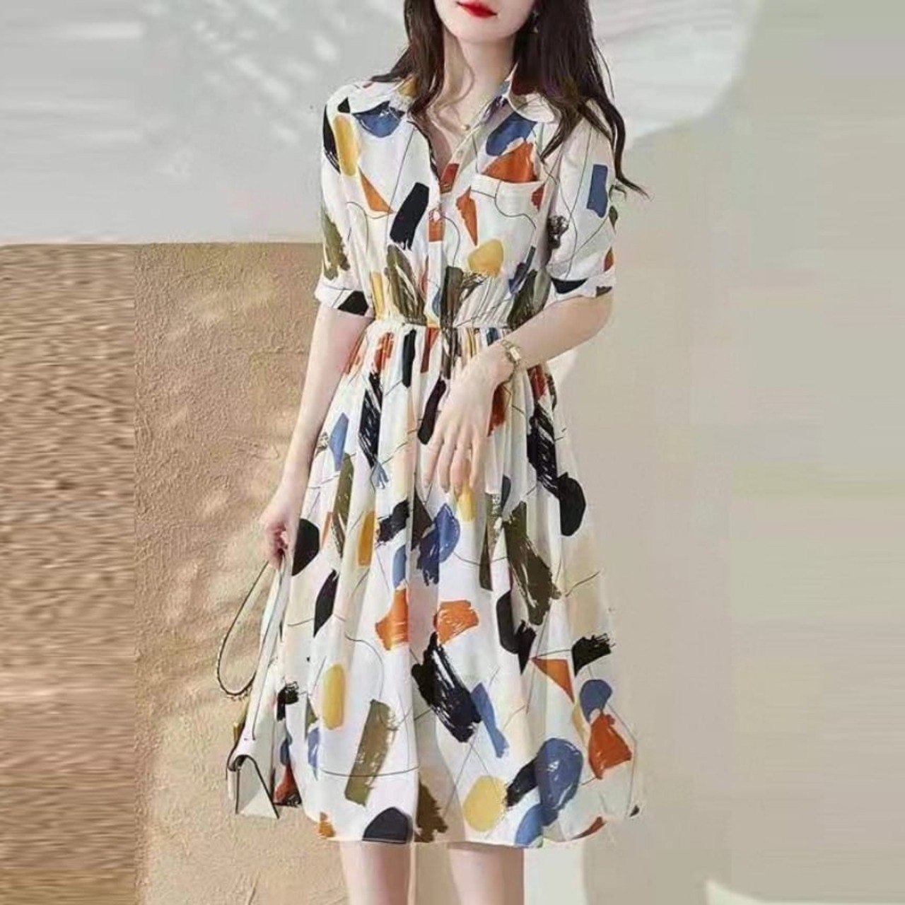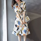 超人気 着痩せ効果 半袖 プリント ワンピース 大人カジュアル fashion ootd 夏コーデ ファッション coordinateコーディネート 夏服 カジュアルコーデ 今日のコーデ 大人コーデ レディースGF5134