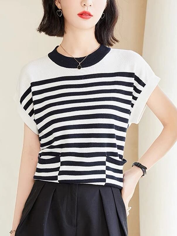 人気上昇中 ボーダー ラウンドネック シンプル ファッション 半袖 シャツ 大人カジュアル fashion ootd 夏コーデ ファッション coordinateコーディネート 夏服 カジュアルコーデ 今日のコーデ 大人コーデ レディースGF5137