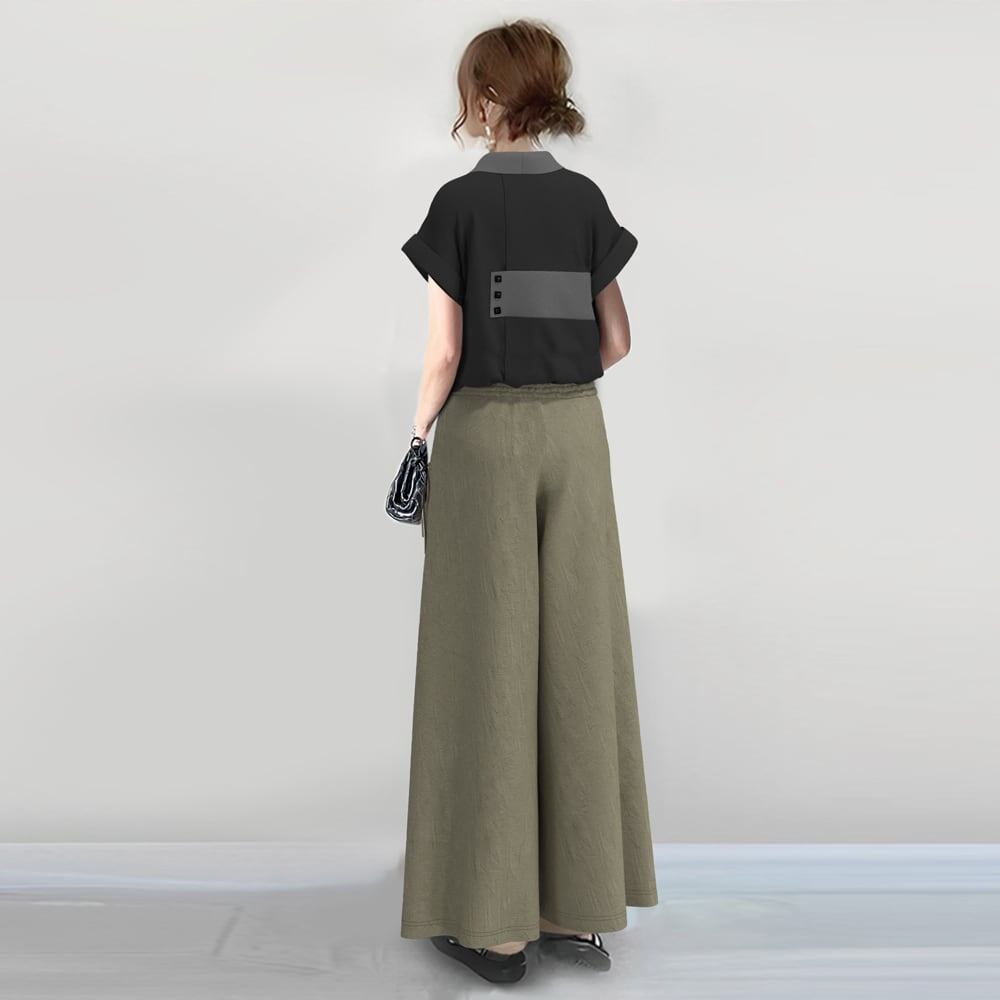 人気上昇中 シンプル 折り襟 配色 Tシャツ ジュアルパンツ 無地 ボウタイ 2点セット 大人カジュアル fashion ootd 夏コーデ ファッション coordinateコーディネート 夏服 カジュアルコーデ 今日のコーデ 大人コーデ レディースGF7945