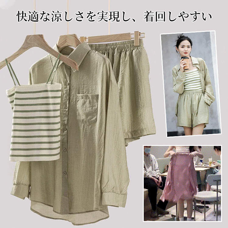 スタイリッシュ シンプル ラウンドネック キャミ カーディガン Vネック 長袖 ショートパンツ 無地 3点セット 大人カジュアル fashion ootd 夏コーデ ファッション coordinateコーディネート 夏服 カジュアルコーデ 今日のコーデ 大人コーデ レディースGF8007