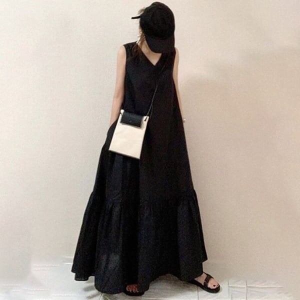 大人可愛い 通気性良い 無地 Vネック ノースリーブ ワンピース 大人カジュアル fashion ootd 夏コーデ ファッション coordinateコーディネート 夏服 カジュアルコーデ 今日のコーデ 大人コーデ レディースGF5178