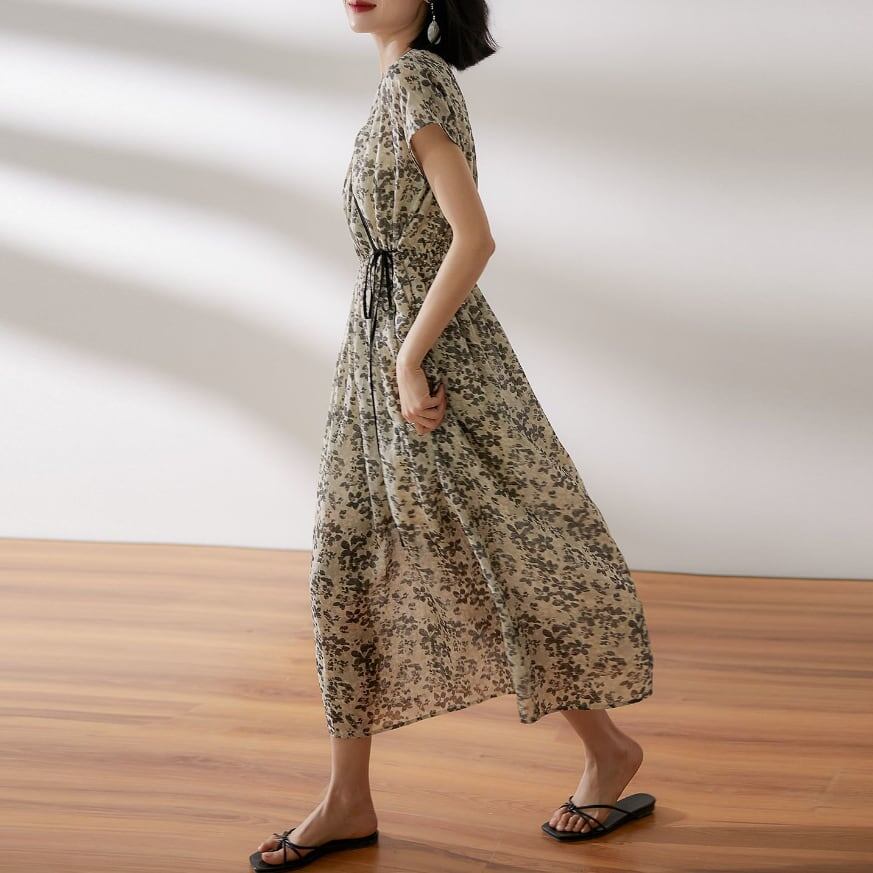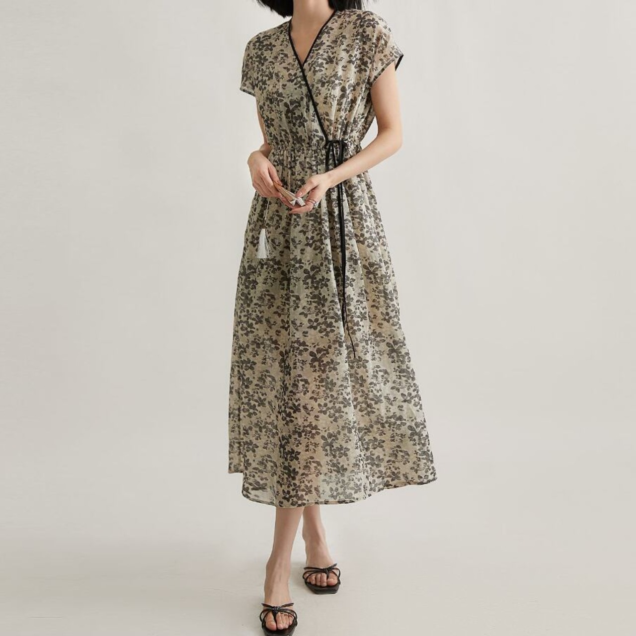 視線を集め プリント ロマンチック 和風 ハイウエスト Aライン 半袖 ファッション 森ガール 花柄ワンピース 大人カジュアル fashion ootd 夏コーデ ファッション coordinateコーディネート 夏服 カジュアルコーデ 今日のコーデ 大人コーデ レディースGF7979