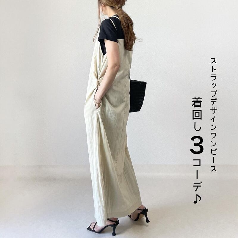女っぽさが漂う シンプル カジュアル ノースリーブ 無地 ジャンパースカート 大人カジュアル fashion ootd 夏コーデ ファッション coordinateコーディネート 夏服 カジュアルコーデ 今日のコーデ 大人コーデ レディースGF8079