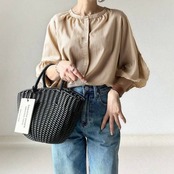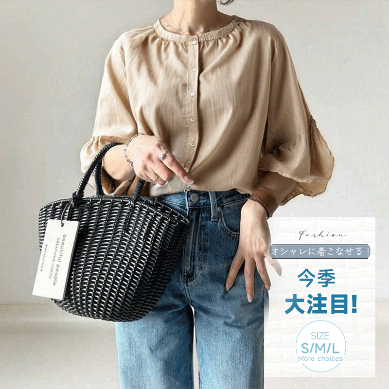 組み合わせ自由 カジュアル シンプル ボタン 無地 ランタンスリーブ 半袖 ラウンドネック ブラウス 大人カジュアル fashion ootd 夏コーデ ファッション coordinateコーディネート 夏服 カジュアルコーデ 今日のコーデ 大人コーデ レディースGF8082