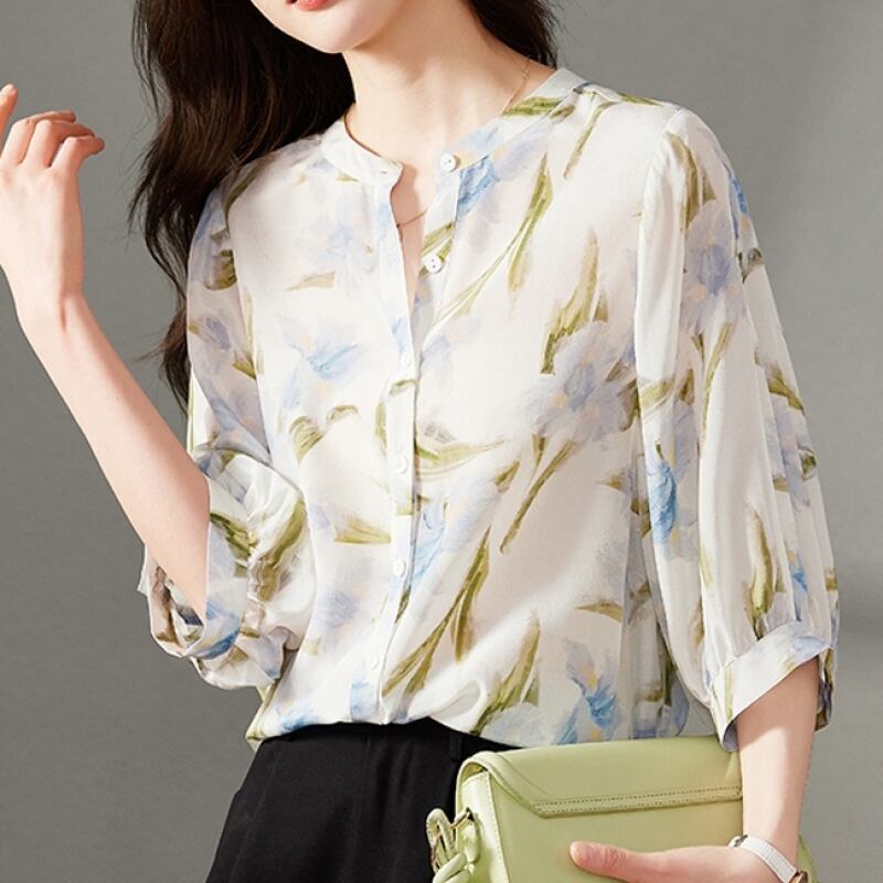 柔らかくて軽い エレガント プリント 大きめのサイズ感 ラウンドネック ブラウス 大人カジュアル fashion ootd 夏コーデ ファッション coordinateコーディネート 夏服 カジュアルコーデ 今日のコーデ 大人コーデ レディースGF8105