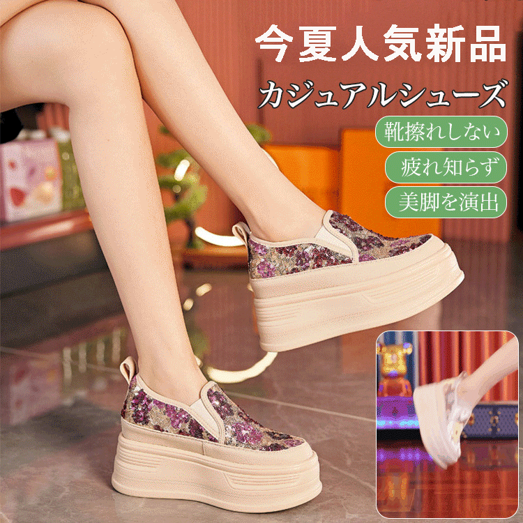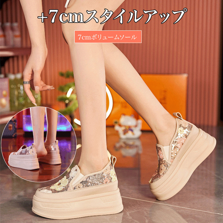 高く見える ラメ入り カジュアル 丸トゥ 厚底 キャンバス 大人カジュアル fashion ootd 夏コーデ ファッション coordinateコーディネート 夏服 カジュアルコーデ 今日のコーデ 大人コーデ レディースGF5209