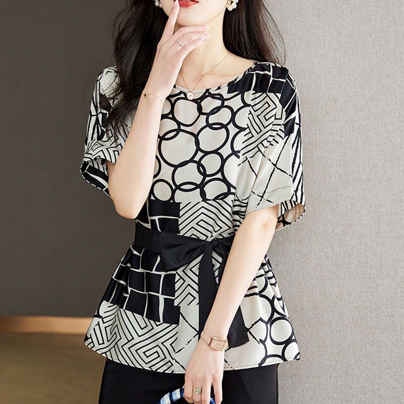 エレガント プリント ドルマンスリーブ 半袖 ブラウス シャツ 大人カジュアル fashion ootd 夏コーデ ファッション coordinateコーディネート 夏服 カジュアルコーデ 今日のコーデ 大人コーデ レディースGF5224