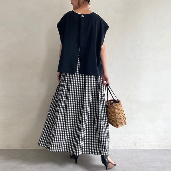 きれいめ系 シンプル チェック柄 半袖 Tシャツ+ 無地 スカート 2点セット 大人カジュアル fashion ootd 夏コーデ ファッション coordinateコーディネート 夏服 カジュアルコーデ 今日のコーデ 大人コーデ レディースGF8122