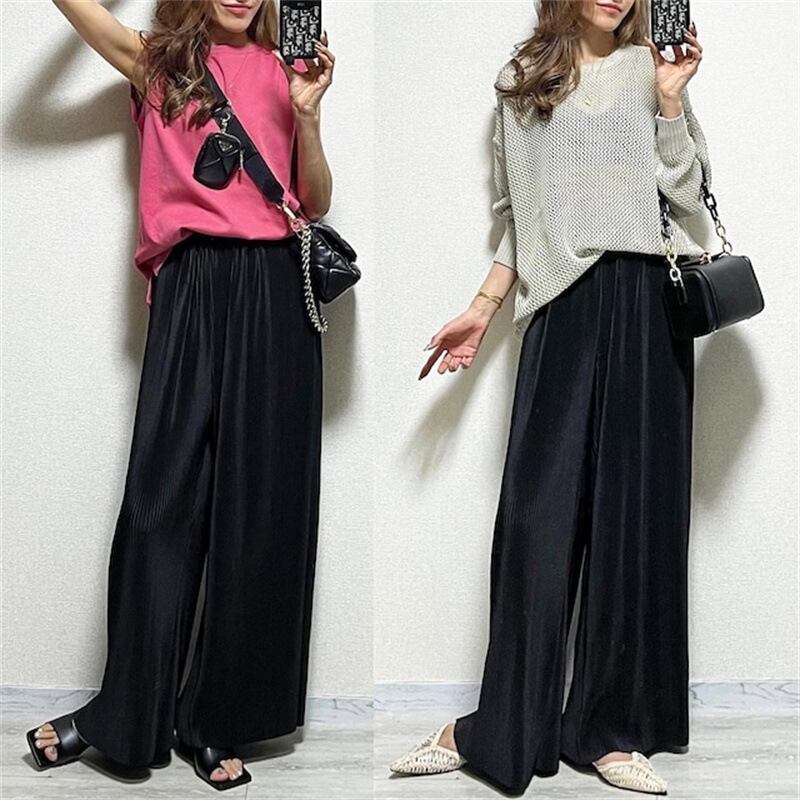 4カラー展開 着痩せ効果 型崩れしない 通気性良い 接触冷感 ビックシルエット ハイウエスト カジュアル ワイドパンツ ガウチョパンツ 大人カジュアル fashion ootd 夏コーデ ファッション coordinateコーディネート 夏服 カジュアルコーデ 今日のコーデ 大人コーデ レディースGF5260