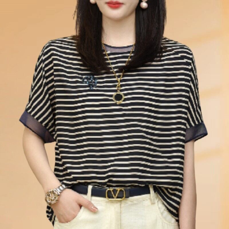 2024年新作入荷 ラウンドネック ボーダーTシャツ 大人カジュアル fashion ootd 夏コーデ ファッション coordinateコーディネート 夏服 カジュアルコーデ 今日のコーデ 大人コーデ レディースGF5285
