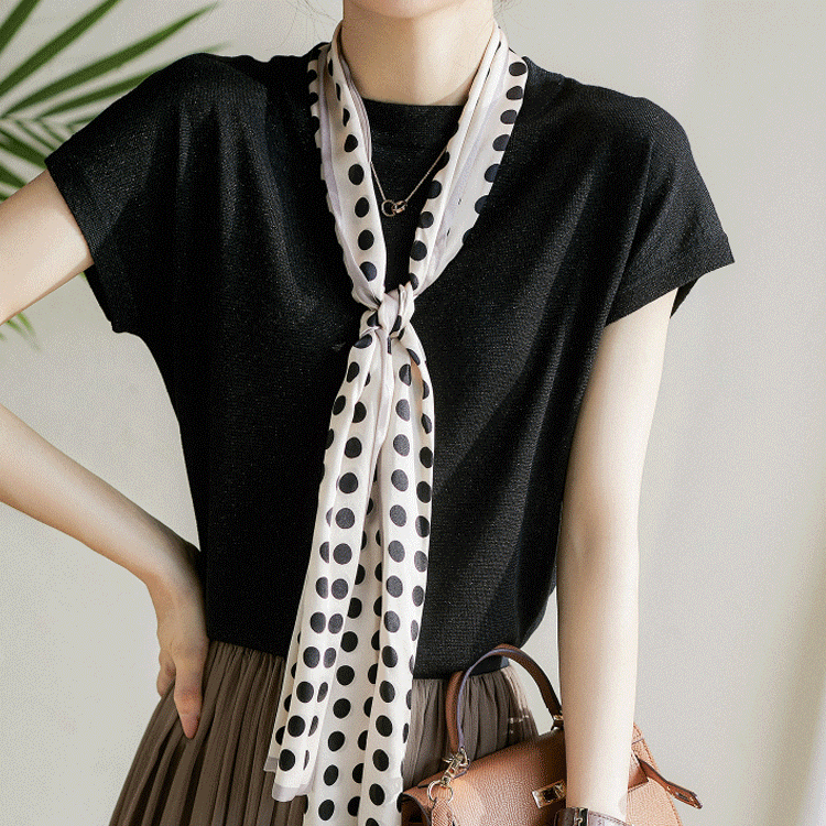 トレンドアイテム ファッション ラメ入り 半袖 ラウンドネック フェミニン Tシャツ 大人カジュアル fashion ootd 夏コーデ ファッション coordinateコーディネート 夏服 カジュアルコーデ 今日のコーデ 大人コーデ レディースGF5318