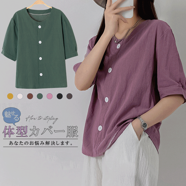 女っぽさが漂う カジュアル シンプル 無地 五分袖 ラウンドネック ブラウス 大人カジュアル fashion ootd 夏コーデ ファッション coordinateコーディネート 夏服 カジュアルコーデ 今日のコーデ 大人コーデ レディースGF5328