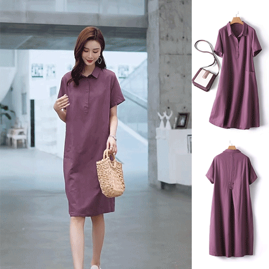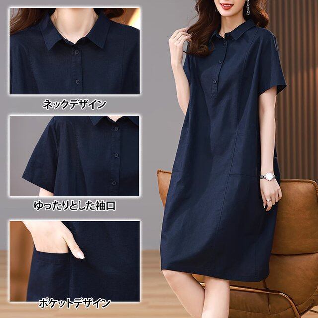 気質アップ シンプル ポケット付き ボタン 半袖 折り襟 無地 カジュアルワンピース 大人カジュアル fashion ootd 夏コーデ ファッション coordinateコーディネート 夏服 カジュアルコーデ 今日のコーデ 大人コーデ レディースGF5330
