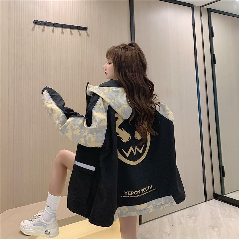 知的で品の良い カートゥーンプリント 一目惚れ ジッパー 長袖 ジャケット ブルゾンGF1019