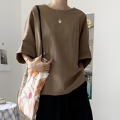 定番シンプル ファッション カジュアル スリット 無地 ラウンドネック 五分袖 Tシャツ 大人カジュアル fashion ootd 夏コーデ ファッション coordinateコーディネート 夏服 カジュアルコーデ 今日のコーデ 大人コーデ レディースGF4526