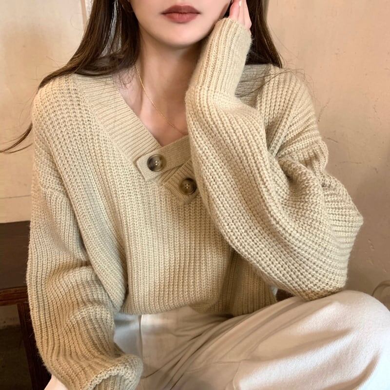 知的で品の良い Vネック 無地 一目惚れ 3色選択可 長袖 ニットセーターGF1026