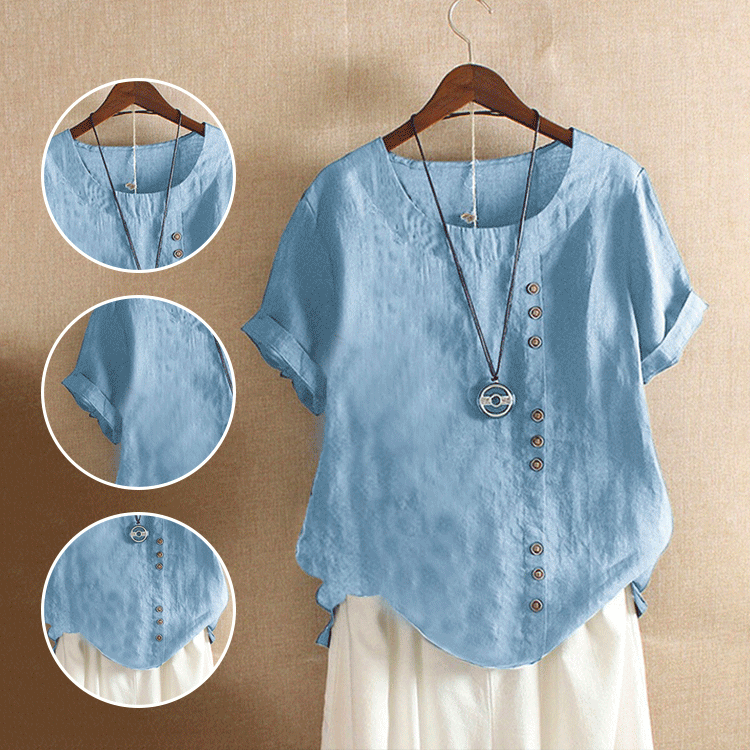 欠かせない カジュアル シンプル ボタン 無地 半袖 ラウンドネック ブラウス 大人カジュアル fashion ootd 夏コーデ ファッション coordinateコーディネート 夏服 カジュアルコーデ 今日のコーデ 大人コーデ レディースGF4576