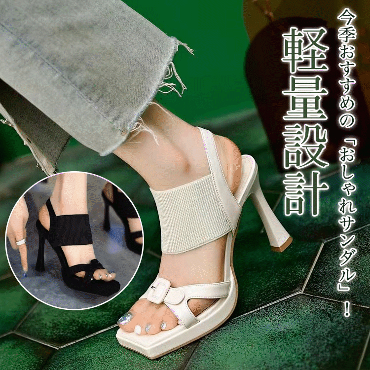 細見え スクエアトゥ 日常 ハイヒール フェミニン カジュアル 通勤 ファッション 滑りとめ サンダル 大人カジュアル fashion ootd 夏コーデ ファッション coordinateコーディネート 夏服 カジュアルコーデ 今日のコーデ 大人コーデ レディースGF4575