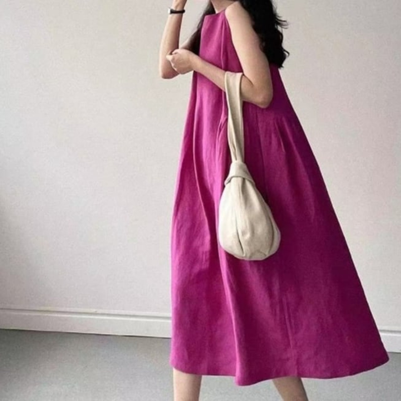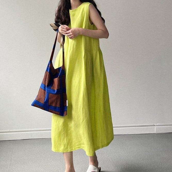 高見えデザイン Aライン ノースリーブ 着痩せ効果 無地 ラウンドネック シンプル ジャンパースカート 大人カジュアル fashion ootd 夏コーデ ファッション coordinateコーディネート 夏服 カジュアルコーデ 今日のコーデ 大人コーデ レディースGF4595