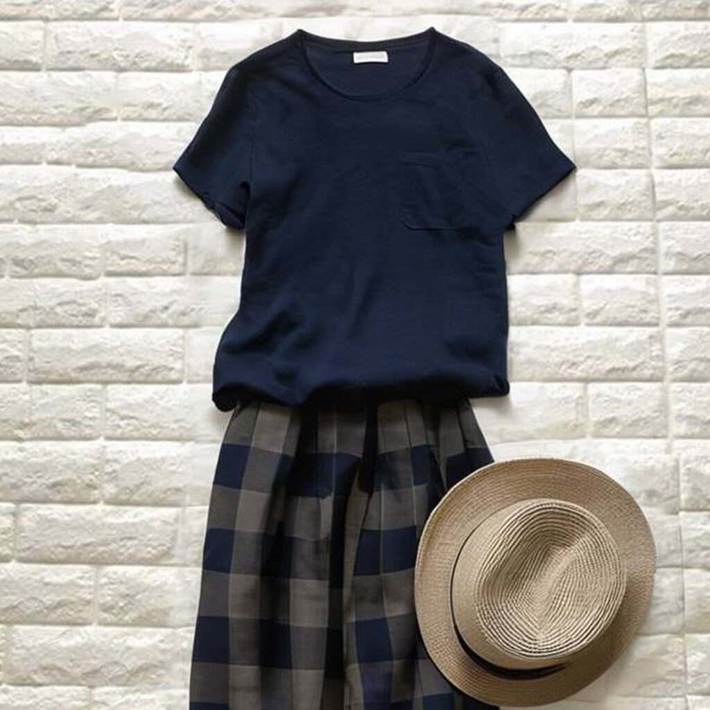 無地 tシャツ+チェック柄 カジュアルパンツ 二点セット 大人カジュアル fashion ootd 夏コーデ ファッション coordinateコーディネート 夏服 カジュアルコーデ 今日のコーデ 大人コーデ レディースGF4601