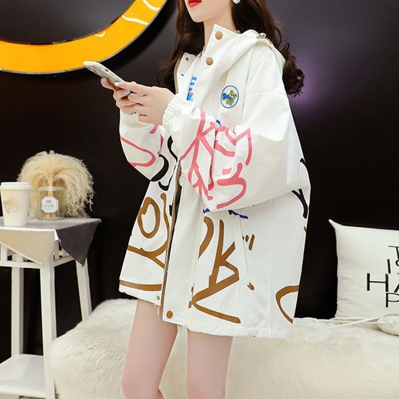 お洒落 デザイン 個性的 長袖 3色選択可 プリント ジャケットブルゾンアウターGF1099
