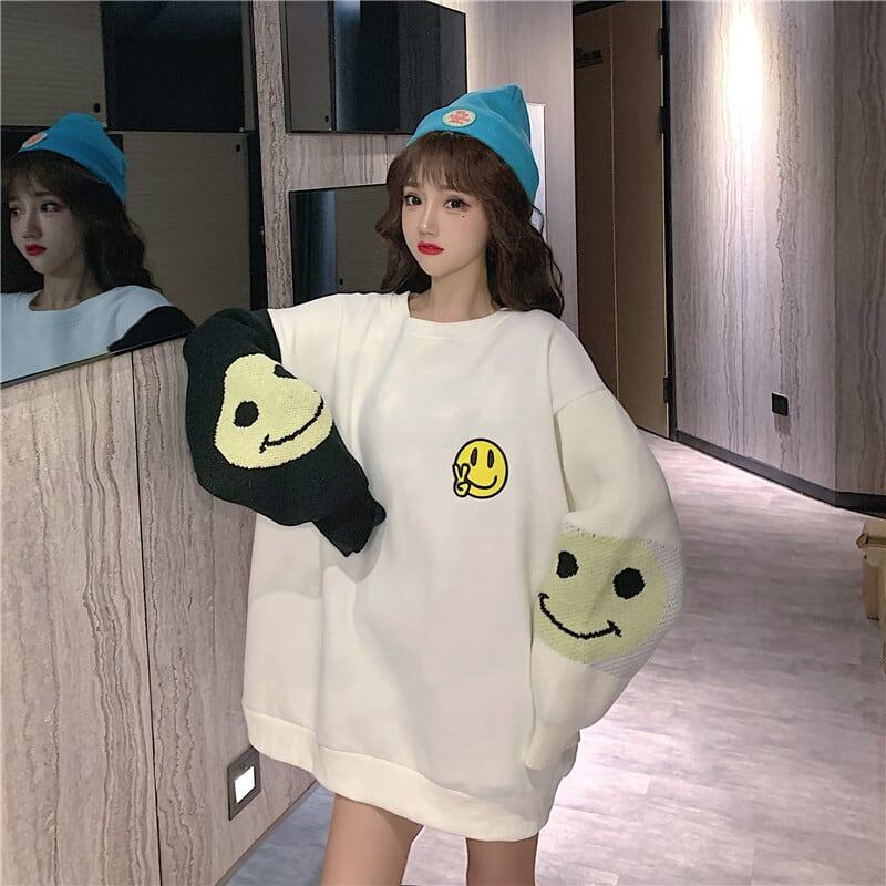 新作 ラウンドネック 笑顔プリント キュート 長袖 スウェットGF1119